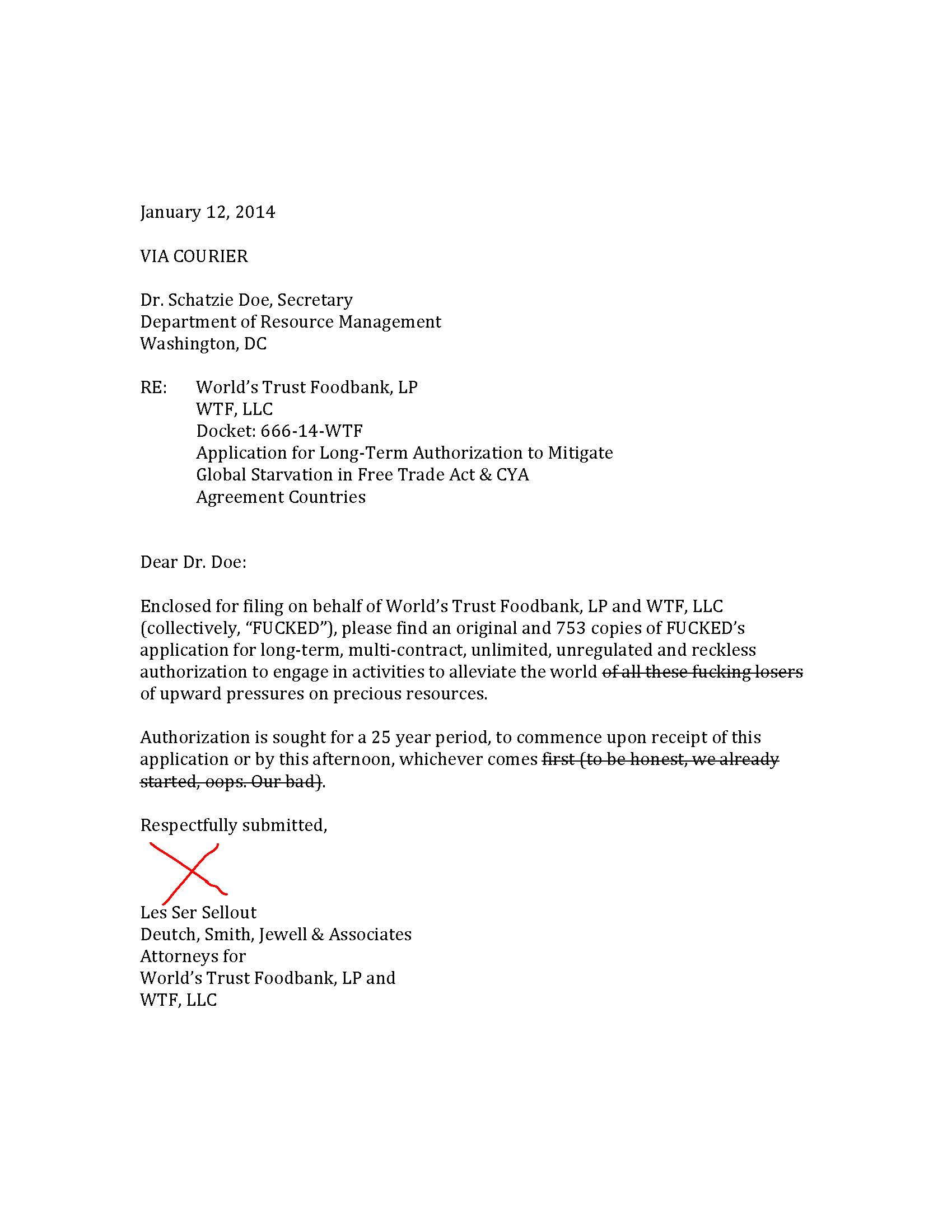 Again, here is the cover letter of a fictitious application to do something absurd and dangerous: