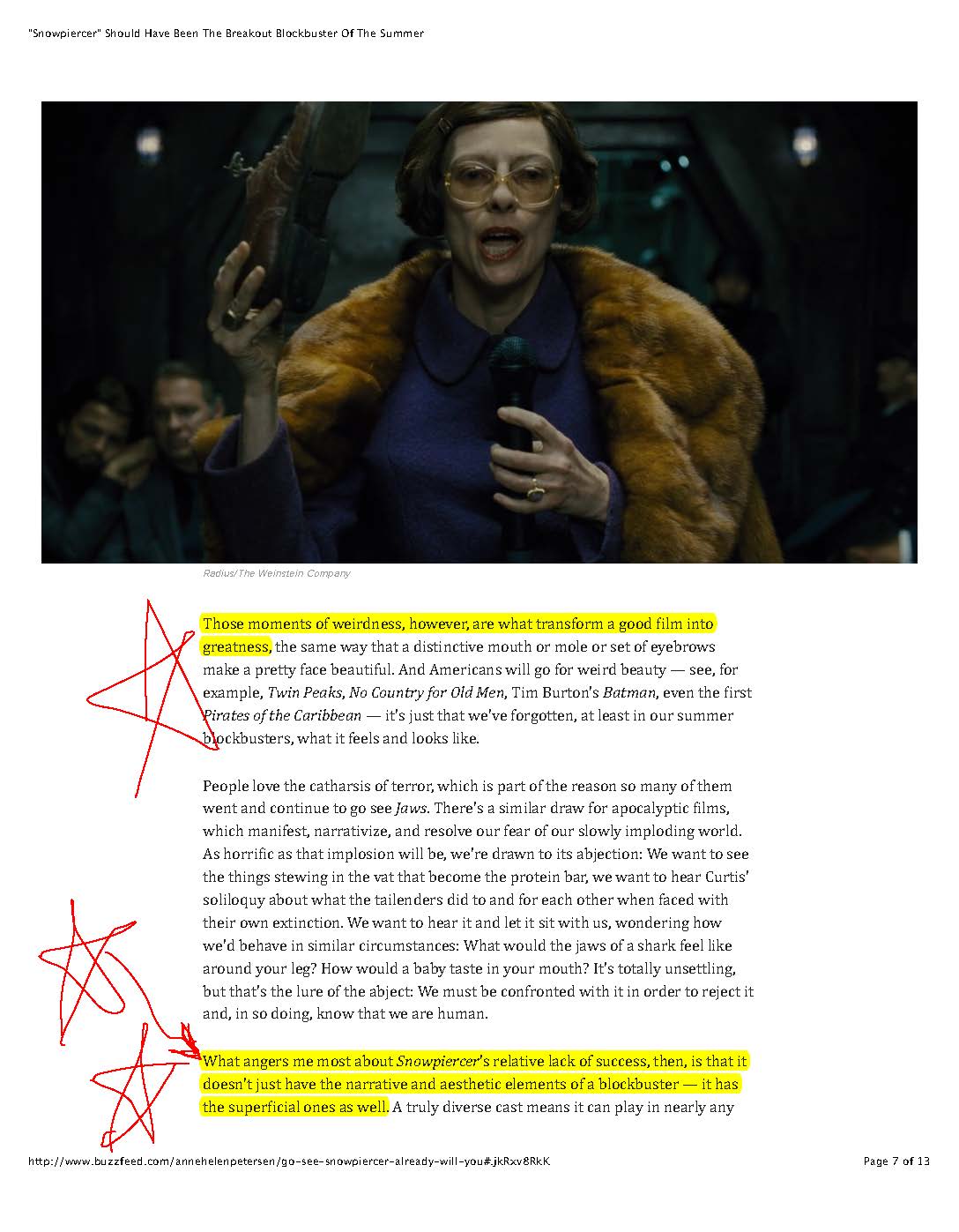 I’ve watched the Snowpiercer one year ago, and I think it was good sci-fi movie