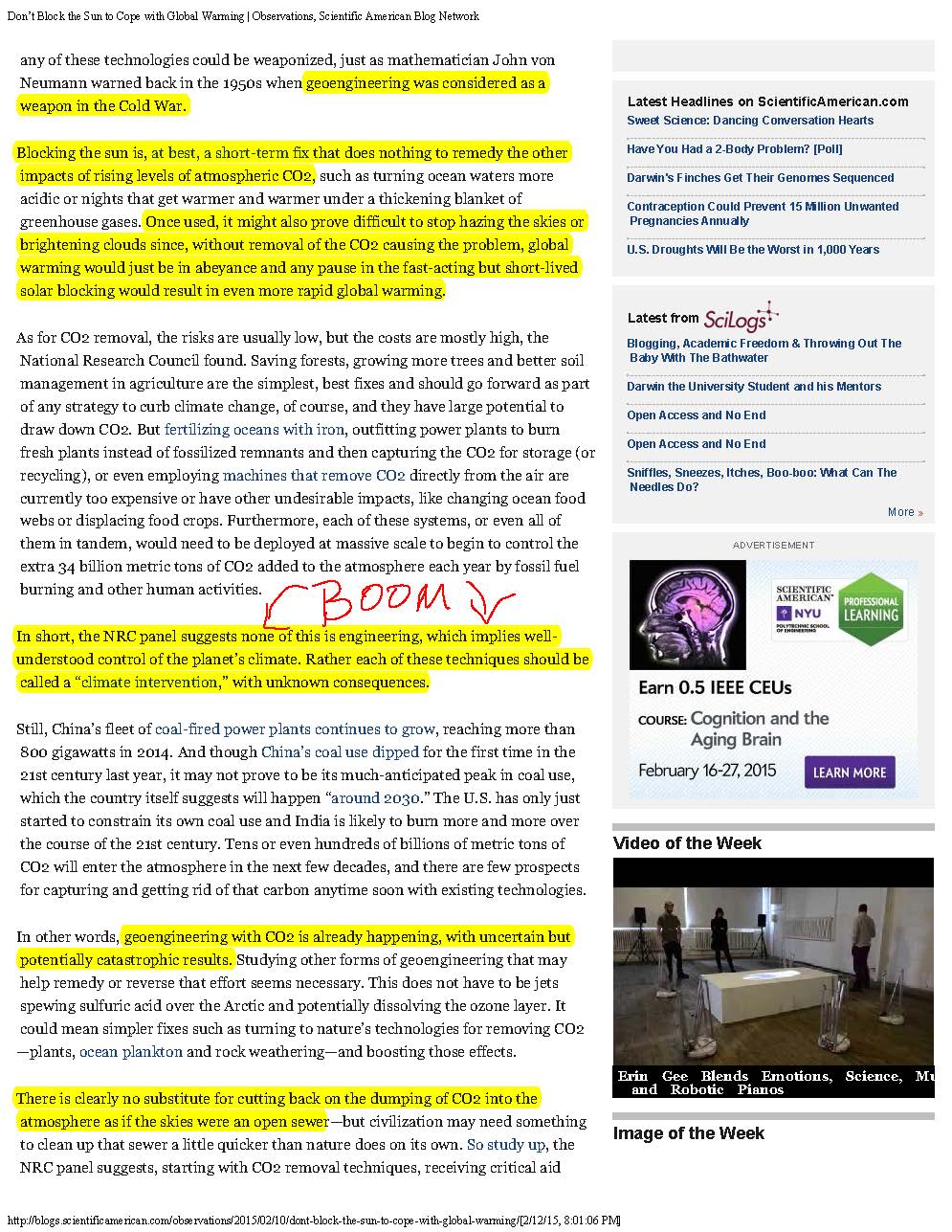 Geoengineering may turn out to be one of the only super high-tech “rabbit holes” that we overly-aggressive humans do NOT choose to go down. I say, may because that could change in a heartbeat if the climate hits one too many tipping points (thanks, in part, to the likes of the Koch brothers et al) and in a panic, humankind is forced into taking dangerously extreme measures in order to survive.
