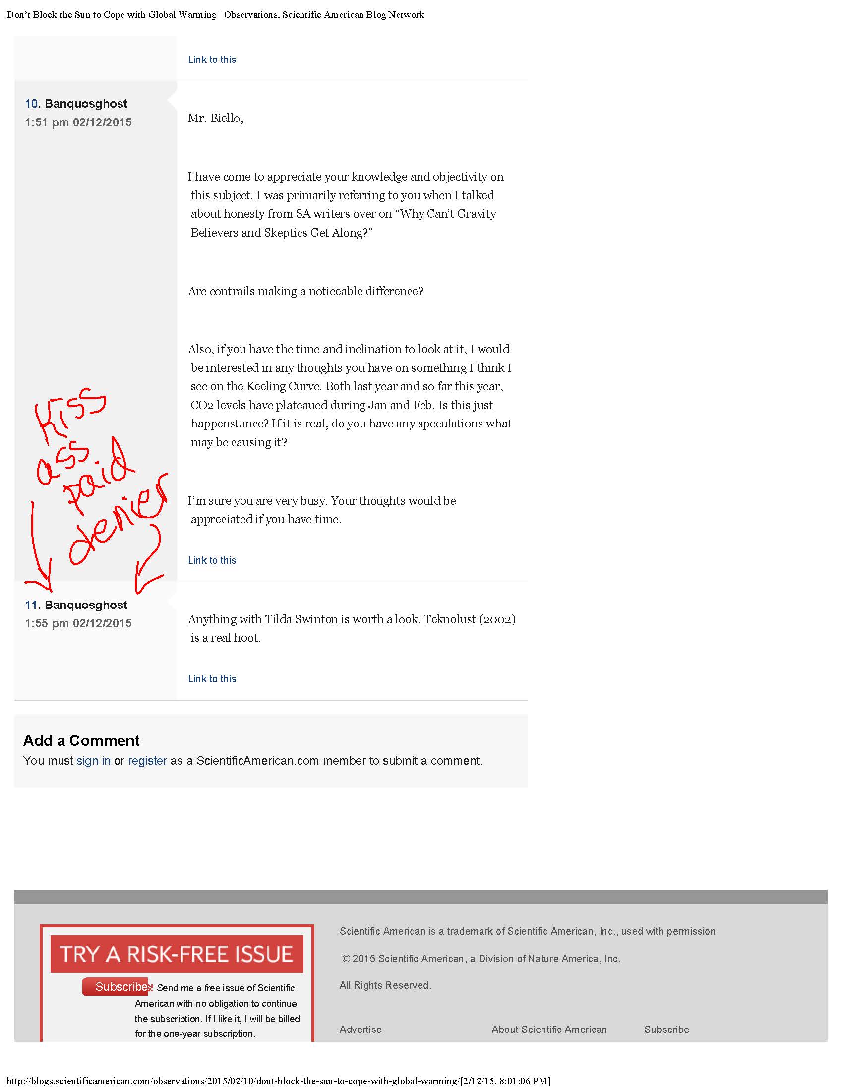 I have previously written about one of the groups, Solar Radiation Management Governance Initiative wanting to dim the sun in order to bring down global temperatures (you can click the geoengineering tag on my website if you want to read the two previous posts). Indeed, even six months ago, it wasn’t looking good for humanity, with momentum building in favor of geoengineering. When big name funding sources like Bill Gates are factored in (he’s one of their main sponsors), fringe projects can take on a life of their own. I am amazed to be able to say that this might not be the case for geoengineering. Several papers and mainstream media articles have come out in recent weeks which appear to have put the “Genie back in the bottle.”