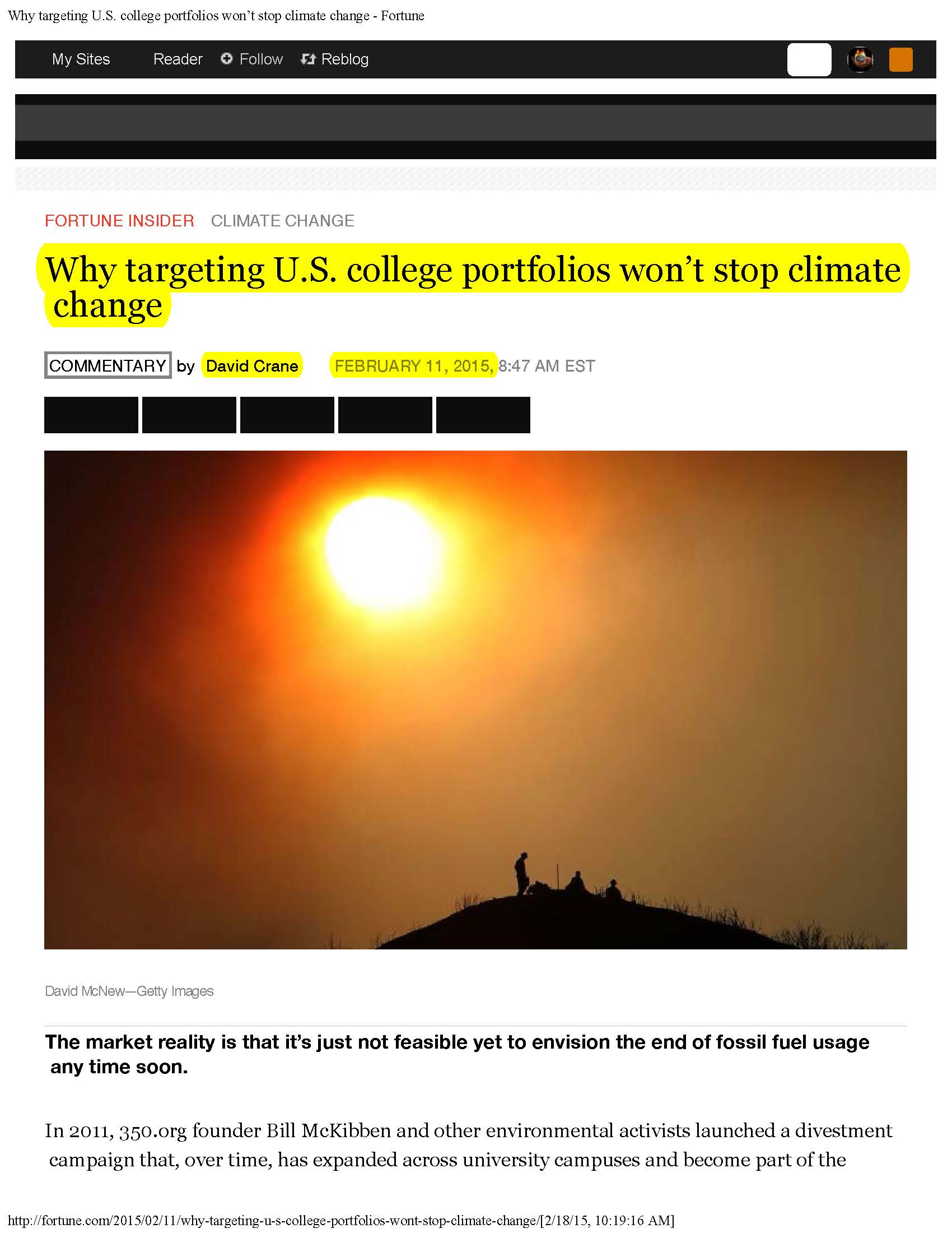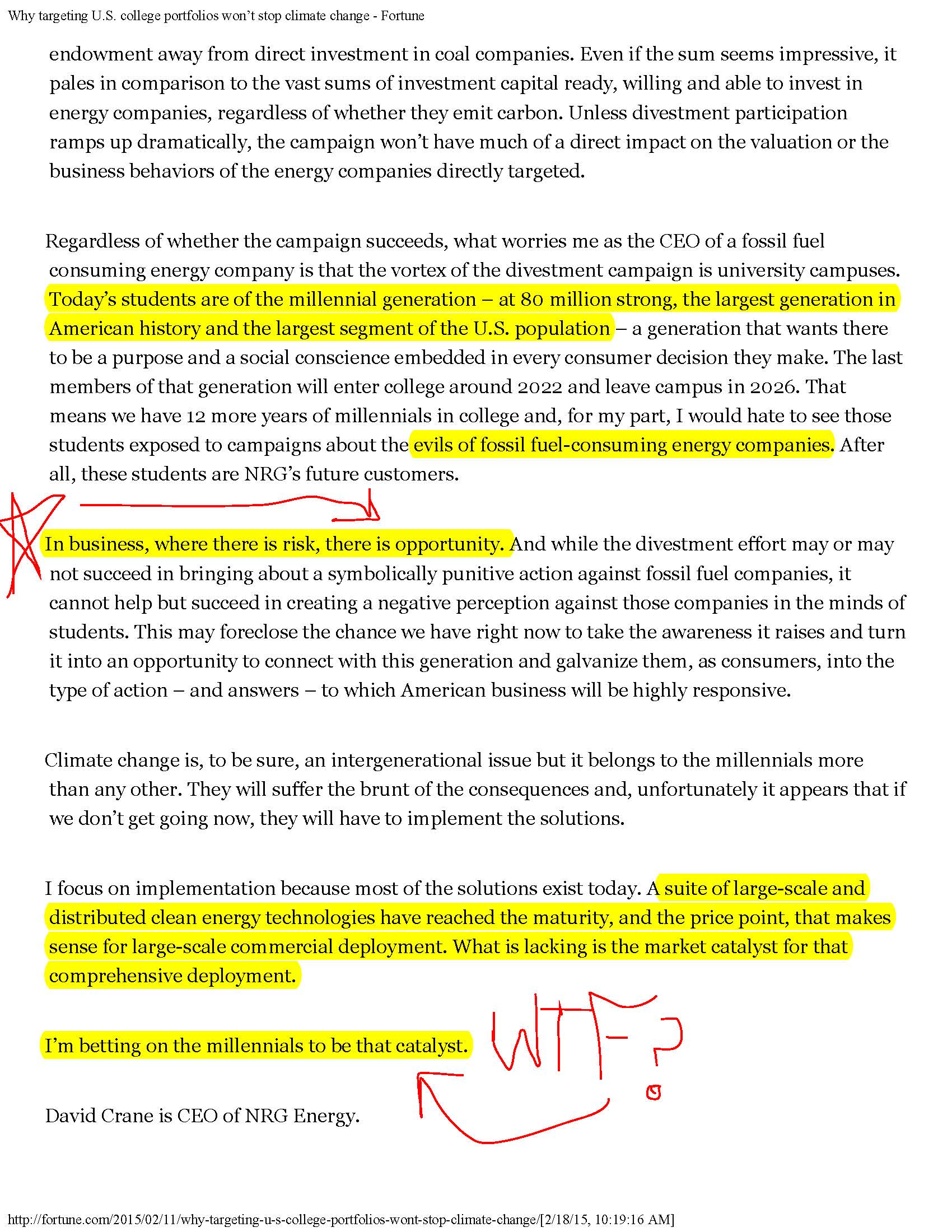Take, for example, the NRG CEO, David Crane, who recently published this piece in, Fortune:
