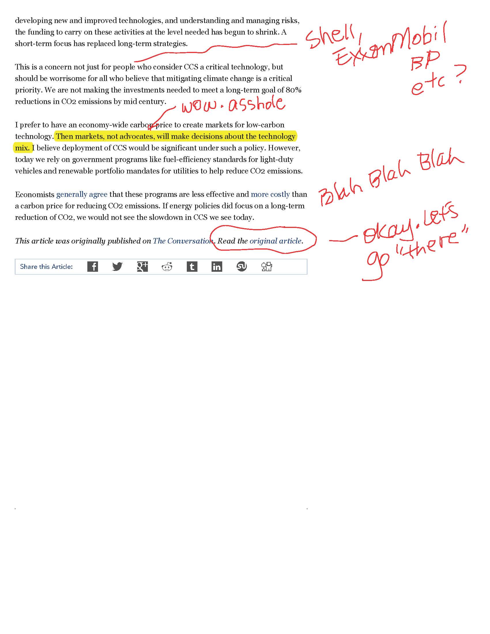 So, much like what I wrote in February about US lawmakers acting like they were desperate to fix our roadways (which are made from petroleum products, of course) at the very moment when oil companies were beginning to feel the pinch from lower gas prices, this professorial fossil fuel industry shill wants YOU to ramp up funding, aka subsidizing, fossil fuel companies while we allow them to simultaneously spew tons of CO2 into the atmosphere. You can click here, by the way, for this article at The Conversation.