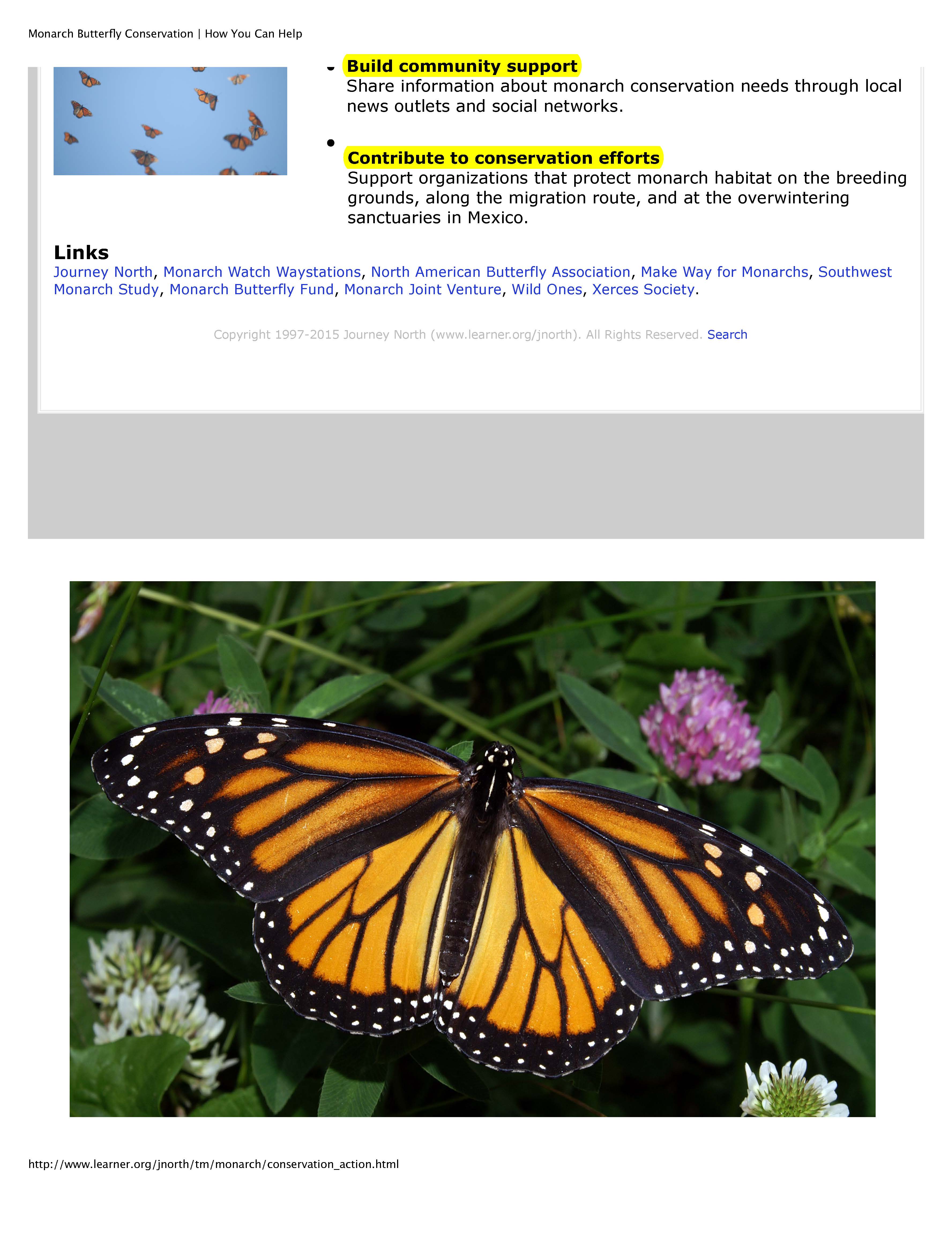 Monarch butterfly populations are in serious decline due to climate change and the use of harmful pesticides which are wiping out the crucial food sources along their migratory paths. As a valuable Citizen Scientist, you can contribute to this tracker by reporting Monarch butterfly activity in your area. Here is a link to report what you see. If you are located along their path, here are some things you can do to help them: