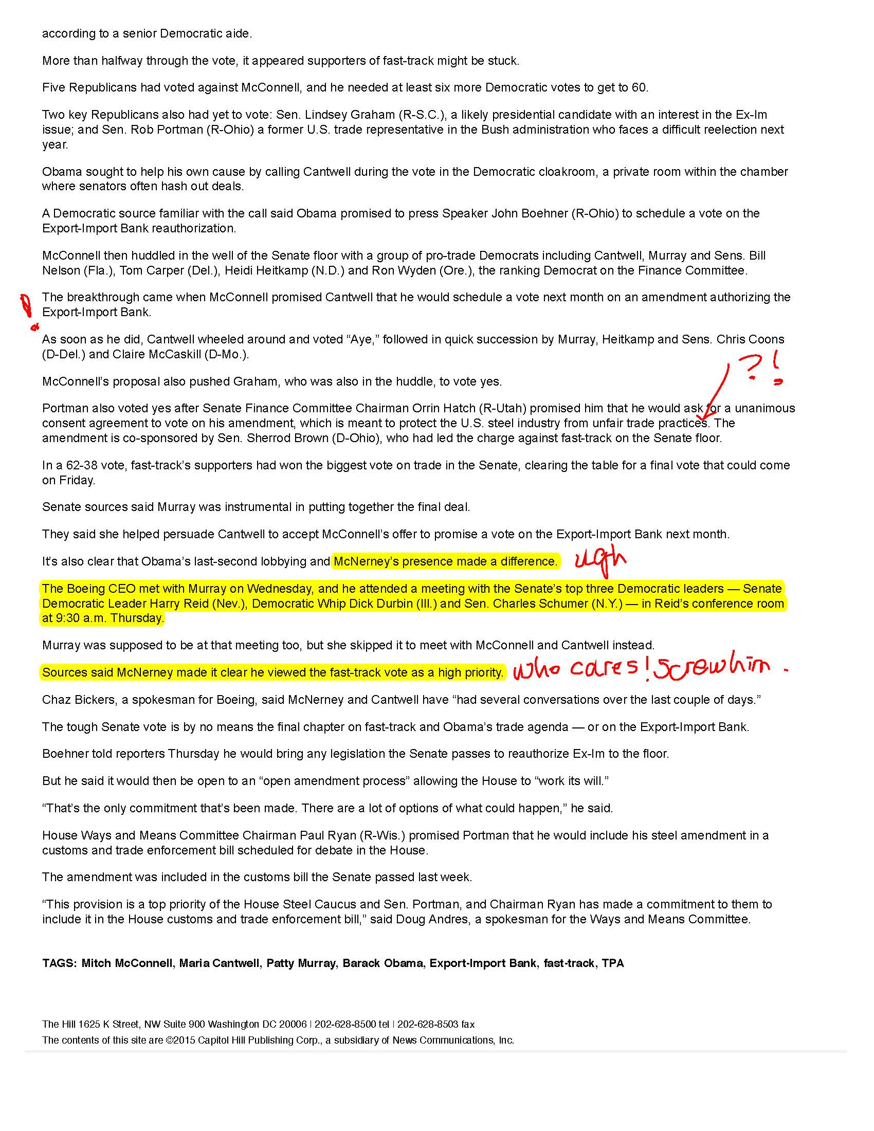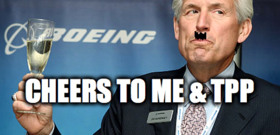 Clearly, Jim McNerney feels that his OPINION that Fast Track and TPP should be passed into law is more important than what virtually every American familiar with this gift to the 1% of the 1% outside of Washington thinks. Indeed, his meddling in an already corrupt process of back room deals and favor swaps has managed to upend the efforts of countless Americans, including myself, who have collectively written thousands of letters, made endless phone calls to elected officials, and campaigned against TPP and Fast Track. McNerney also believes that what he stands to gain for Boeing (although not for the employees of Boeing, who overwhelmingly oppose TPP) is of more value than the harm it will inflict on practically every other American.