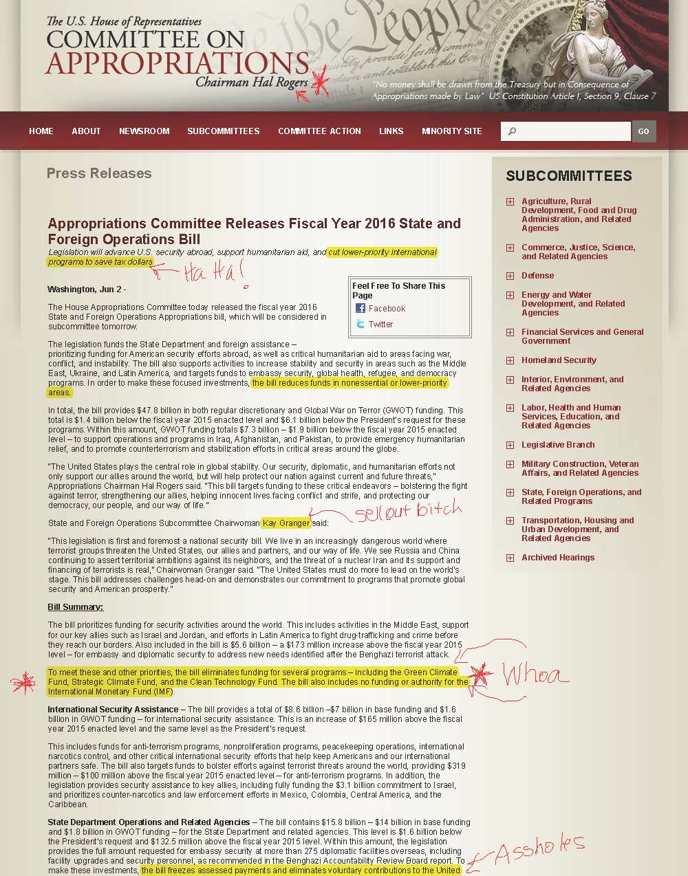 Just today, the House Appropriations Committee (which is made up of these shysters)