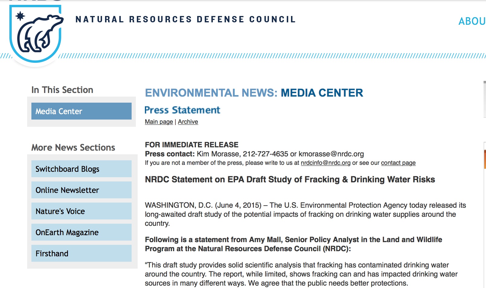NRDC says that the EPA report confirms that drinking water has been contaminated: