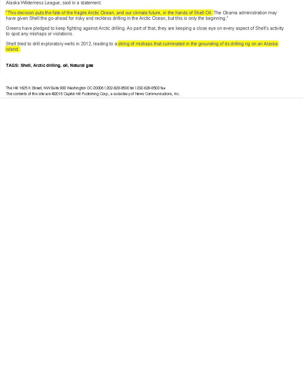For those who don’t know Shell’s horrible safety record and utter past failure in the Arctic, in 2012, while the biggest corporation in the WORLD, with revenues of $467 BILLION dollars, they risked not only their employees lives, but also the US Coast Guard’s lives (they had to be rescued) by skeedaddling out of an Arctic drilling site in an attempt to evade paying (at most) a $6 million dollar oil-facilities tax. If they had been in an Alaskan port on New Year’s Day, they would have had to pay what is the “Shell equivalent” of loose change under your couch cushions. And so, a corporation which had already invested over $6 billion dollars (at that time) to drill in the Arctic had their rig, the Kulluk fail miserably and ultimately be used for scrap metal for a measly $6 million dollars. That same bunch of morons are now being given yet another chance to leak more toxic chemicals and spill more oil in the Arctic. And with world oil prices down the toilet, even more cost-cutting on safety is a near certainty.