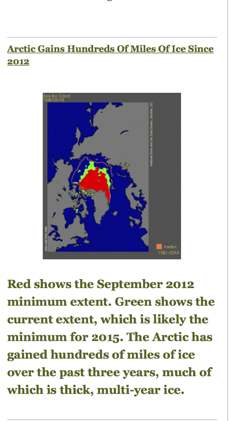 Take a look what he wrote on his “Real Science” blog about how Arctic sea ice is actually growing: