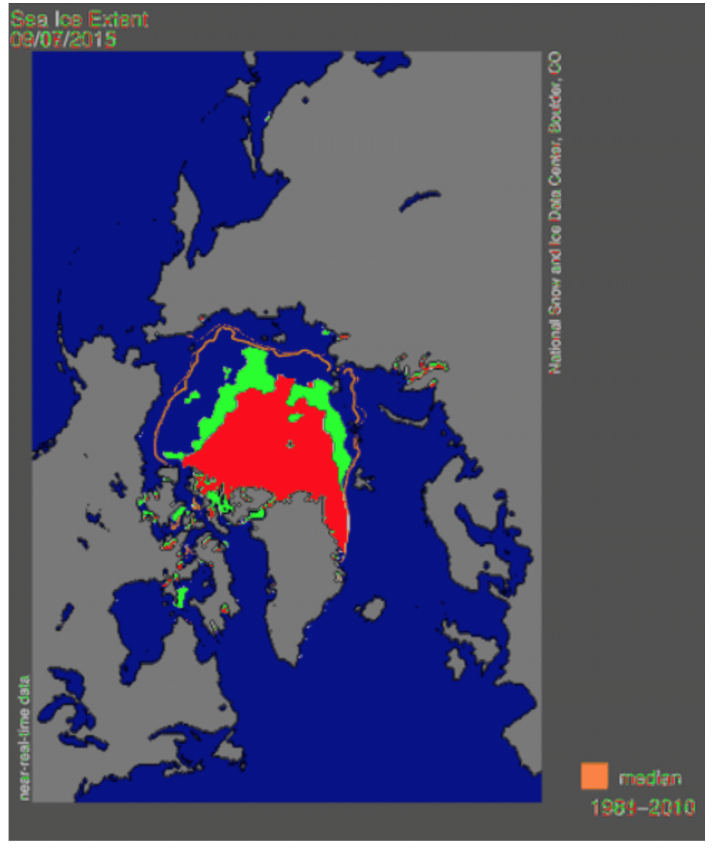 The helpful folks at NSIDC were kind enough to send me their original graphic from September 7, 2015 since they don’t store them on their website, which, of course, Steven Goddard/Tony Heller knew, and he was counting on. Which reminds me…hey, Steven Goddard/Tony Heller, they don’t appreciate you messing with their images, falsifying data and misrepresenting the facts, dude. I’ll let them deal with you, though.