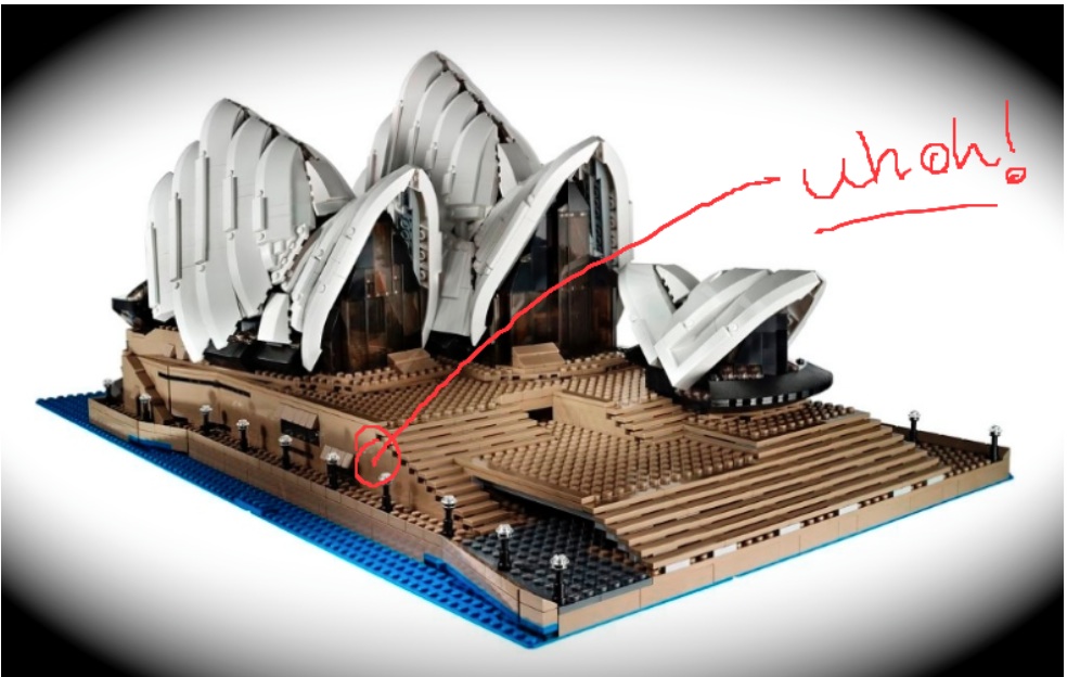 I’ve put a lot of IKEA furniture together in my life. I’ve also built more LEGO structures than I can count, some of them (especially the Star Wars sets) have dozens of PAGES of instructions and thousands of little plastic pieces. It can be pretty addictive. The maddening thing about both IKEA furniture and LEGO creations is that if you make a mistake early in the process, you’ll eventually realize it. And regret it. At that point, if it’s “late in the game,” you have to make the painful choice about whether to tear the whole thing down until you find the mistake, or just deal with it and expect problems. Not a good thing with furniture. Not a big deal with non weight-bearing toys.
